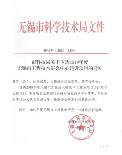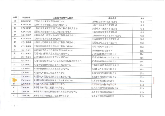 無錫市科學技術局文件(jiàn):錫科研【2019】155號文,關於下達2019年度無錫市(shì)工程技術研究中心建設項目的通知(zhī),江蘇(sū)新合(hé)益機械(xiè)有限公司獲得“無錫市高強度精(jīng)密活(huó)塞杆工程技術研究中心”稱號,此項目成功獲批(pī)是新合益積極推(tuī)進企業自主創新能力建設加速科技(jì)基礎(chǔ)平台建設(shè)所取(qǔ)得的又一成果。